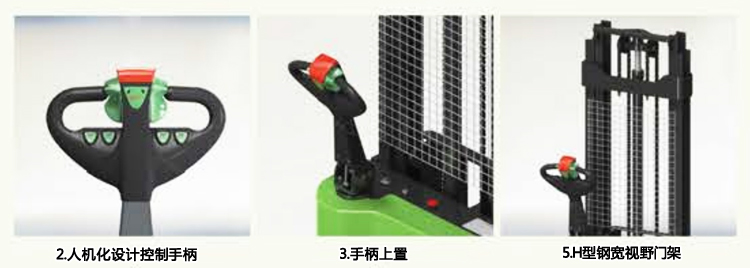 3.電動堆高機手柄上置,減小轉彎半徑,適合狹小空間操作;