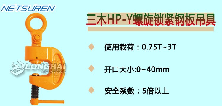 三木HP-Y螺旋鎖緊鋼板吊具參數: