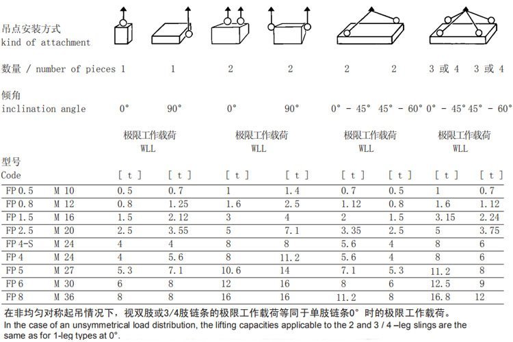FP型扁平旋轉(zhuǎn)吊點(diǎn)技術(shù)參數(shù):