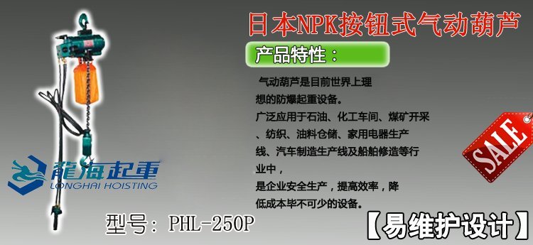 日本NPK按鈕式氣動葫蘆是通過壓縮空氣來驅(qū)動空氣馬達,達到提升重物的功能,通過按鈕控制可以達到快速提升與慢速提升的功能.