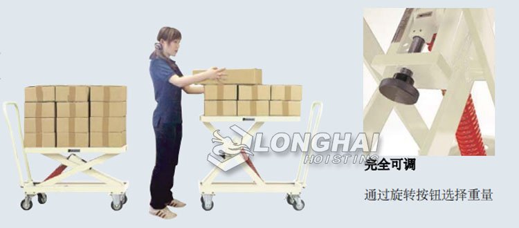 Bishamon移動(dòng)作業(yè)平臺(tái)車可以自動(dòng)升降,隨著負(fù)載重量的變化,臺(tái)面會(huì)上升,或者下降,保持負(fù)載物在一個(gè)方便的高度,可以通過旋轉(zhuǎn)按鈕,控制負(fù)載;