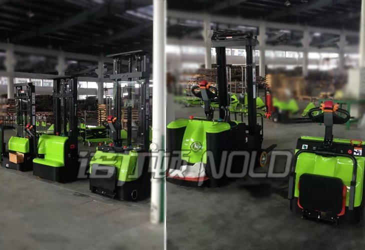 2、前后行走操控:按下控制手柄,接通控制開關(guān)電源,再撥動(dòng)控制面板上的行走調(diào)速手柄,向前旋轉(zhuǎn)時(shí)接通前行行走開關(guān),車輛調(diào)速前行,向后旋轉(zhuǎn)手柄調(diào)速器,為向后調(diào)速行駛,松開控制手柄為叉車制動(dòng);